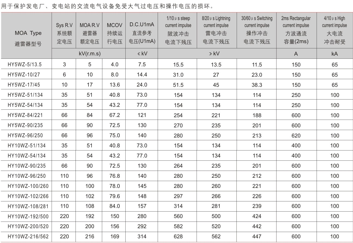| | | | | | | |_____________________操作冲击电流下的最大残压kV