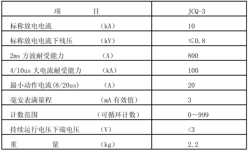 由于采用了新型氧化锌阀片,额定电流下残压低,方波通流能力大,持续运行电压下阻抗高,耐工频过电流能力大等特点。电气性能如下表所示: