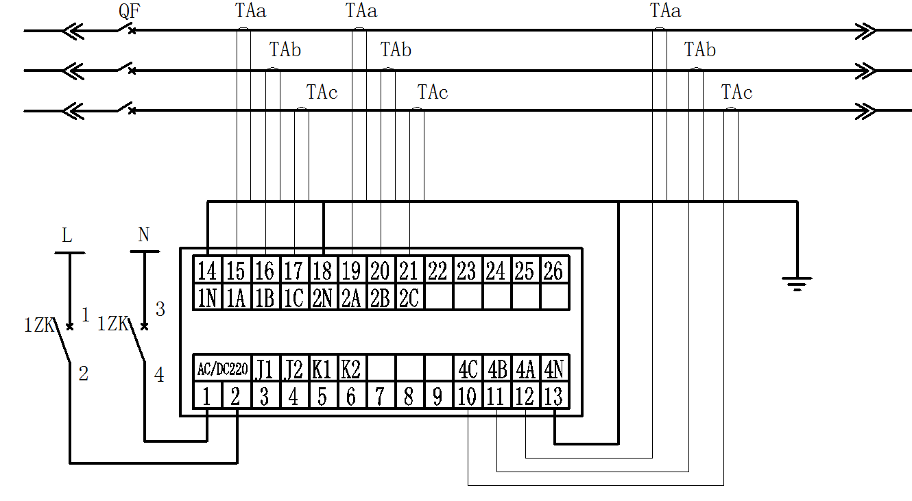 K1、K2为继电器输出接点,容量为AC:250V/5A DC:110V/2A