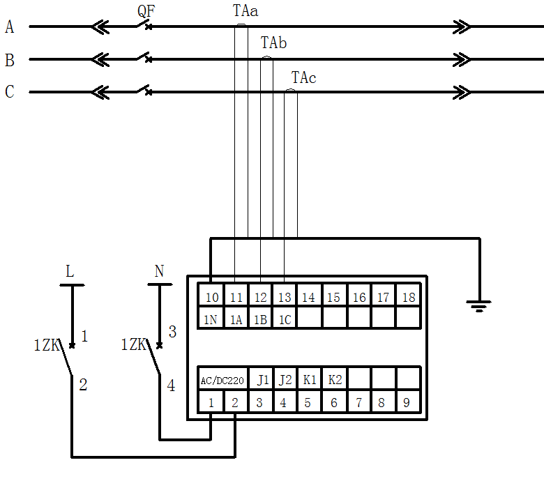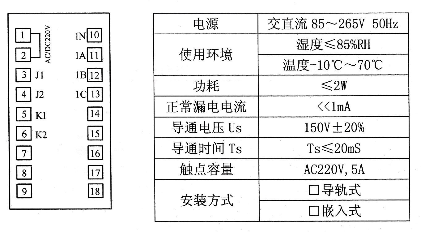 K1、K2为继电器输出接点,容量为AC:250V/5A DC:110V/2A
